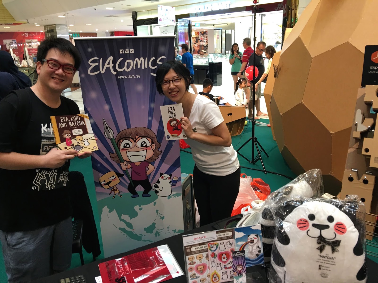 Yuko (mum) and Nami (daughter) was at The Centrepoint when they spotted my book. They were so engrossed in it that they returned on the second day with the older son to get a Matcha cat cushion and more books to give away! Nami also folded a crane for me to express her love for my comics. I'm very happy that they loved my books :D